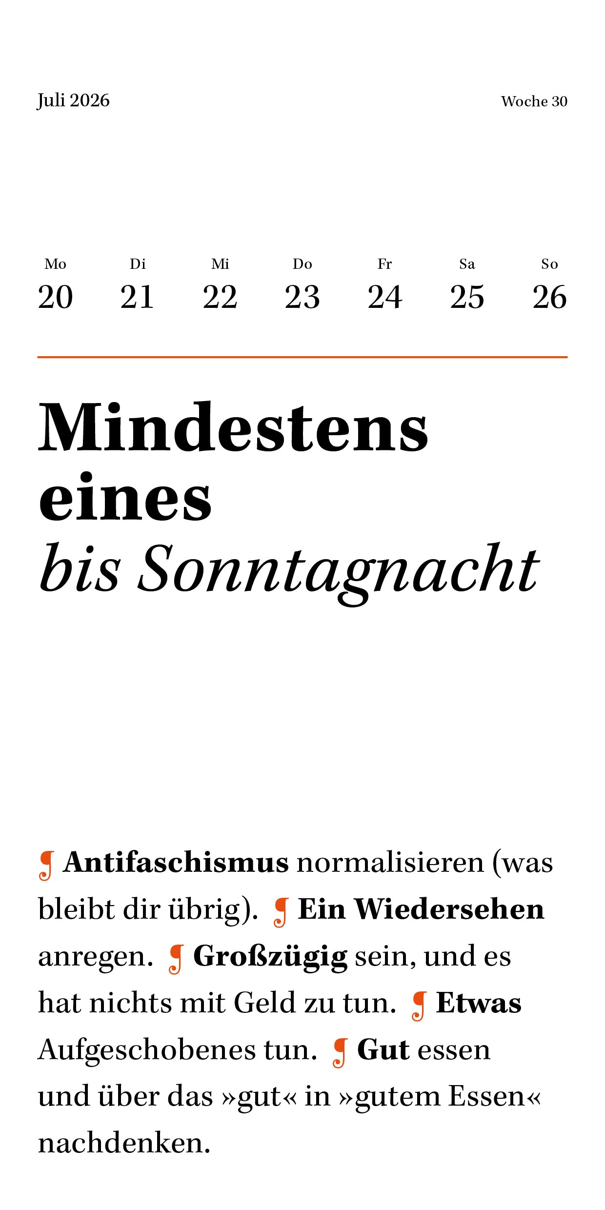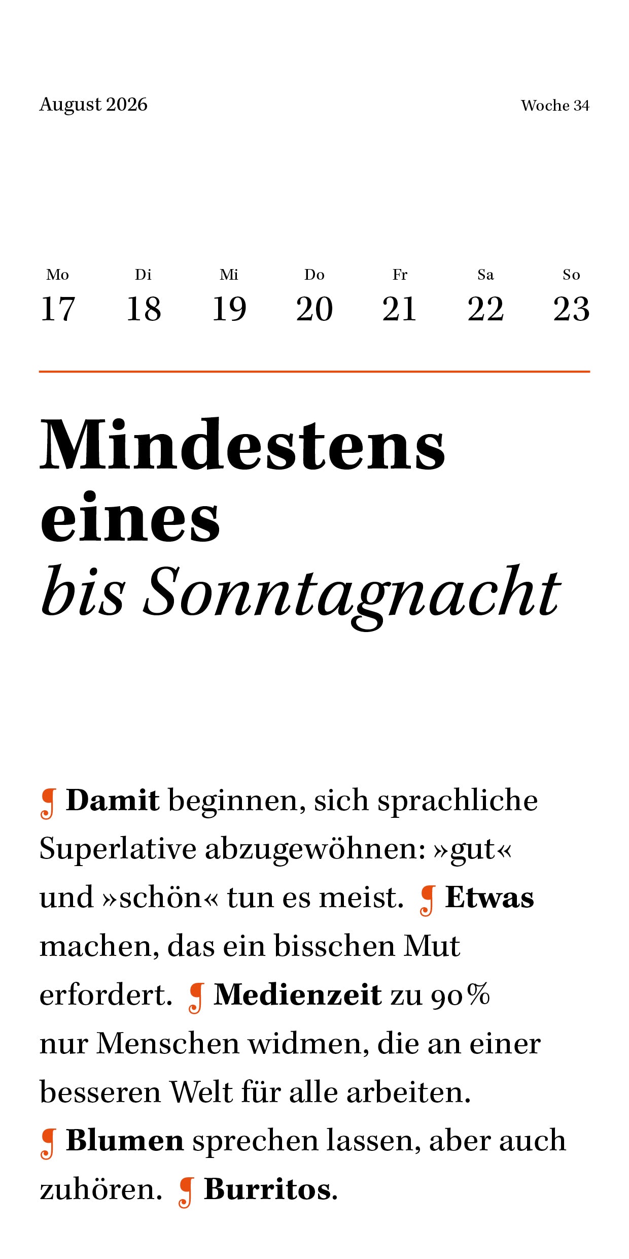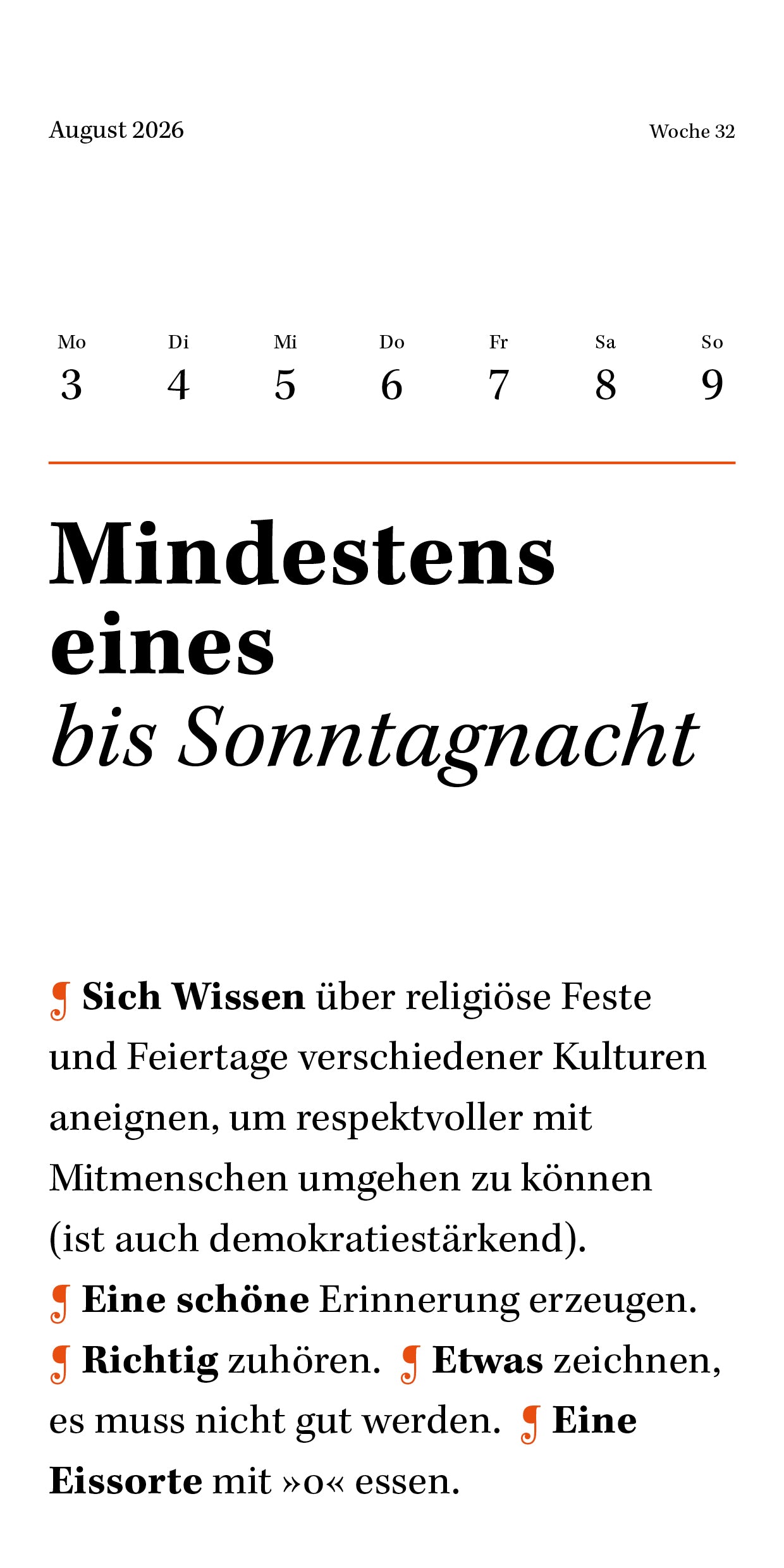 VORBESTELLEN Mindestens-eines-Wochenkalender 2026