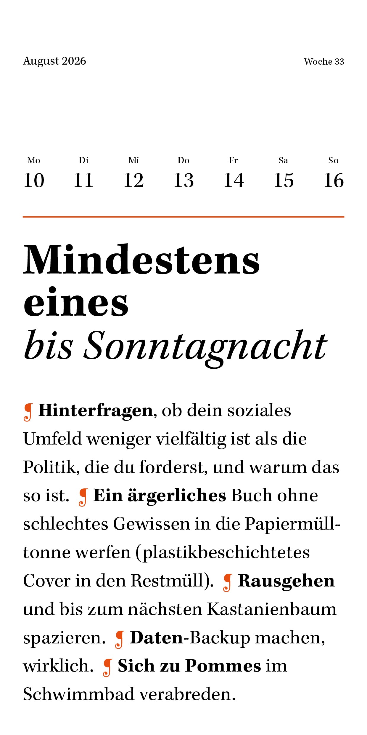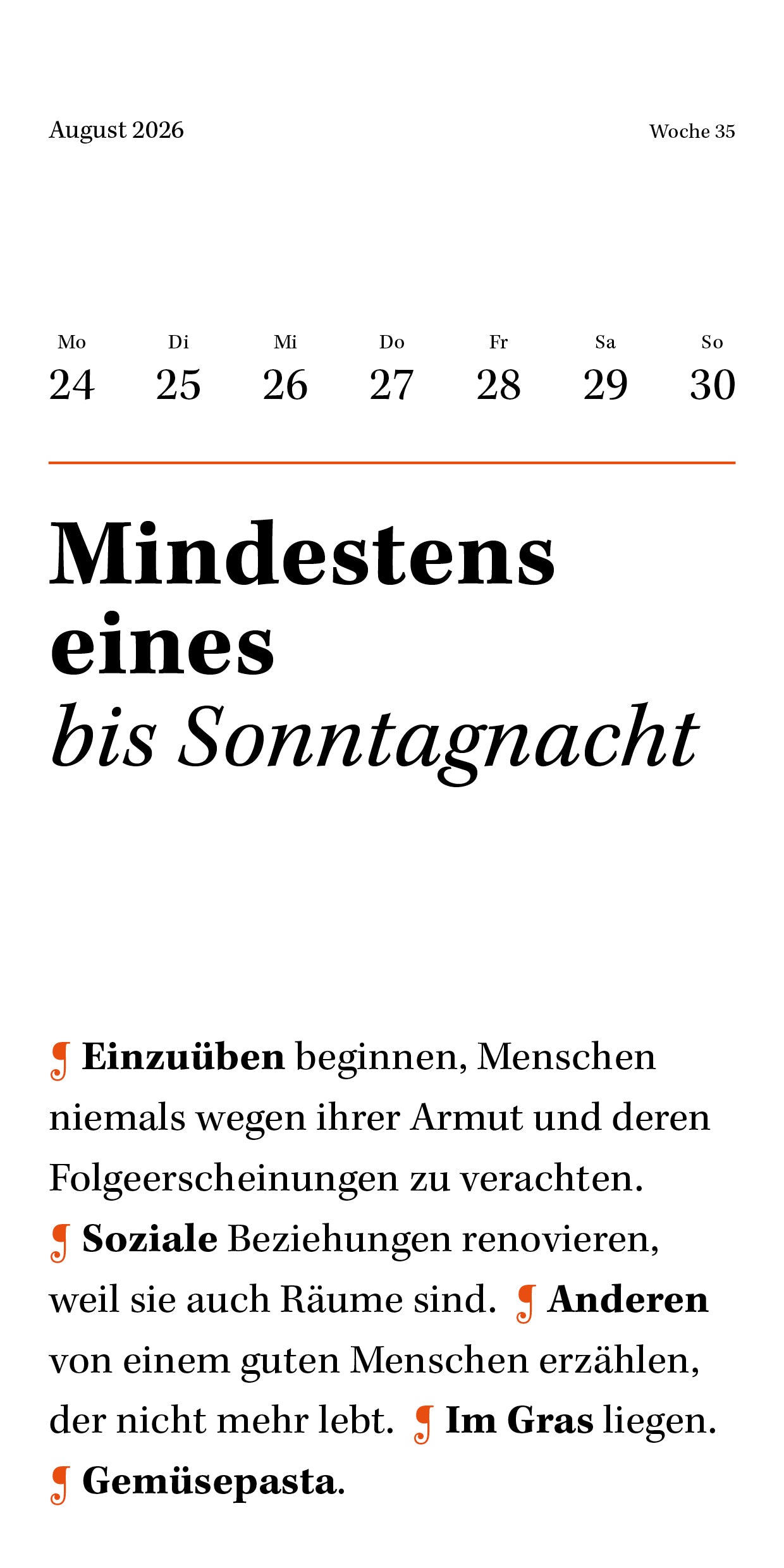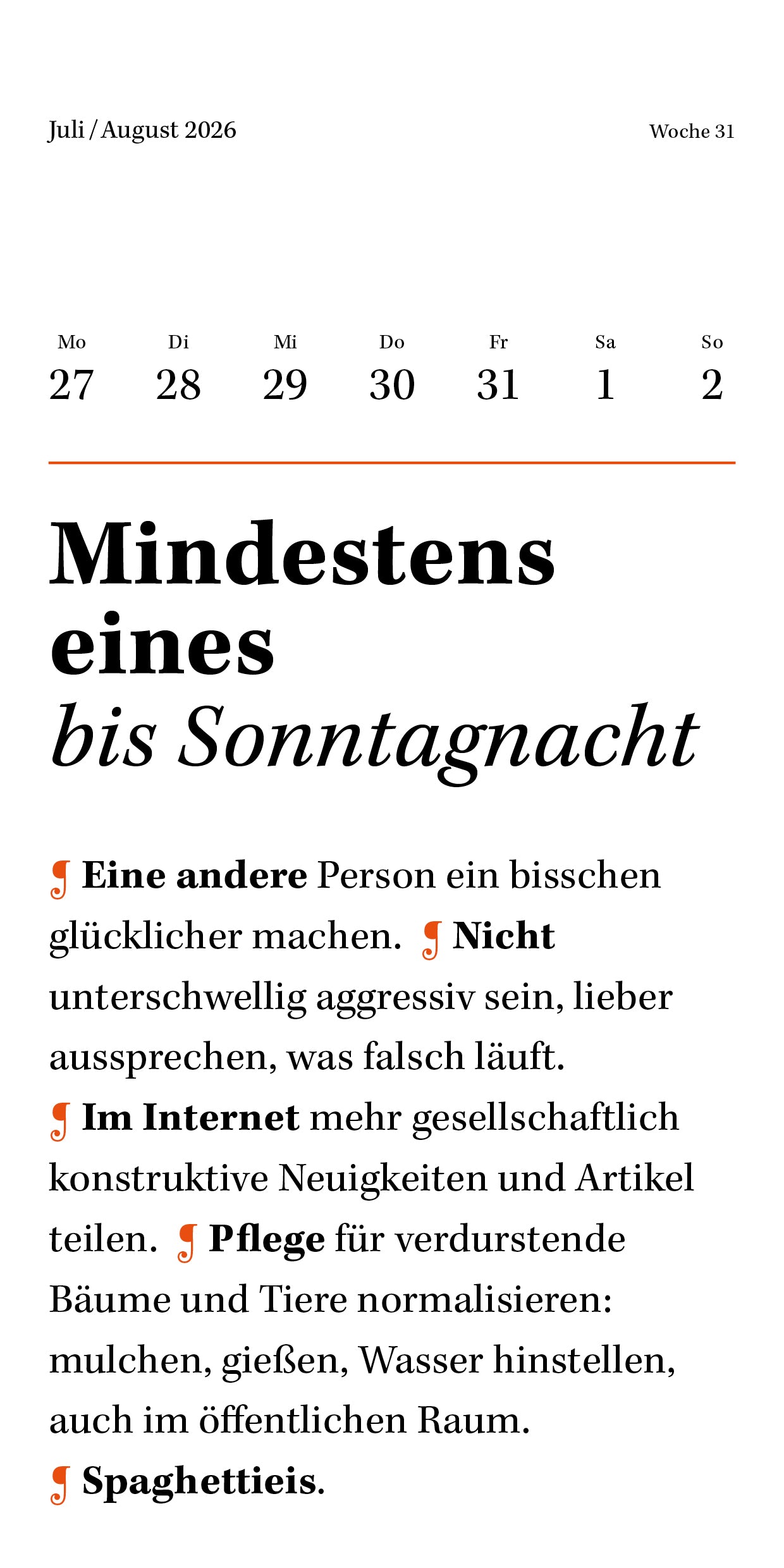 VORBESTELLEN Mindestens-eines-Wochenkalender 2026